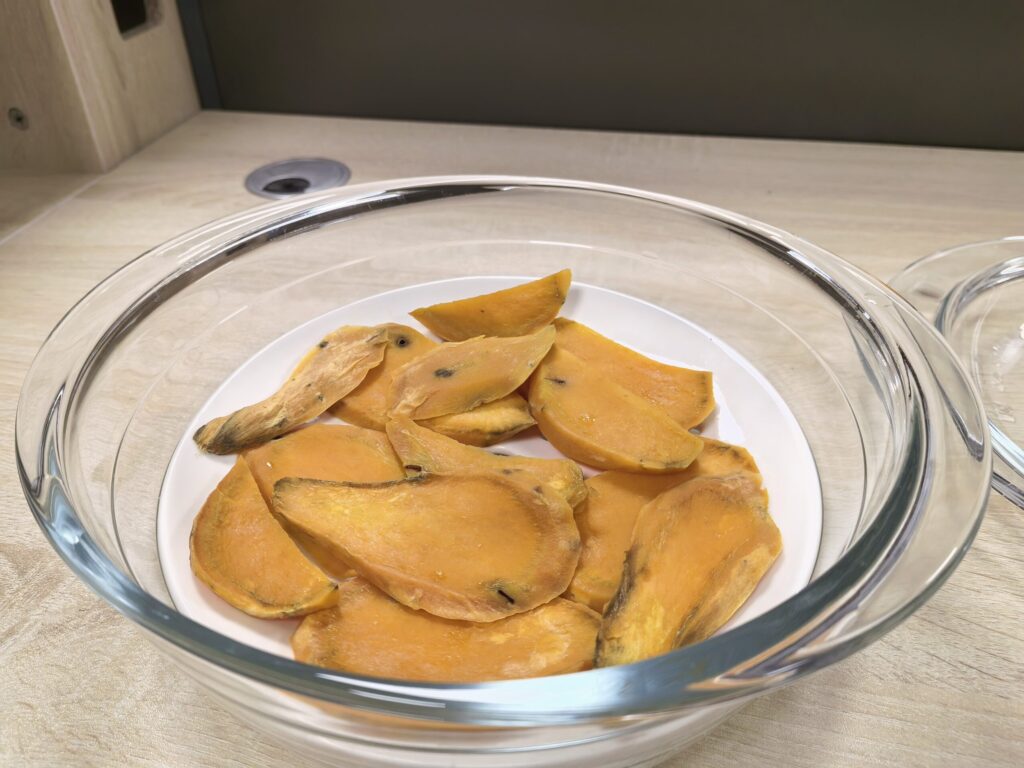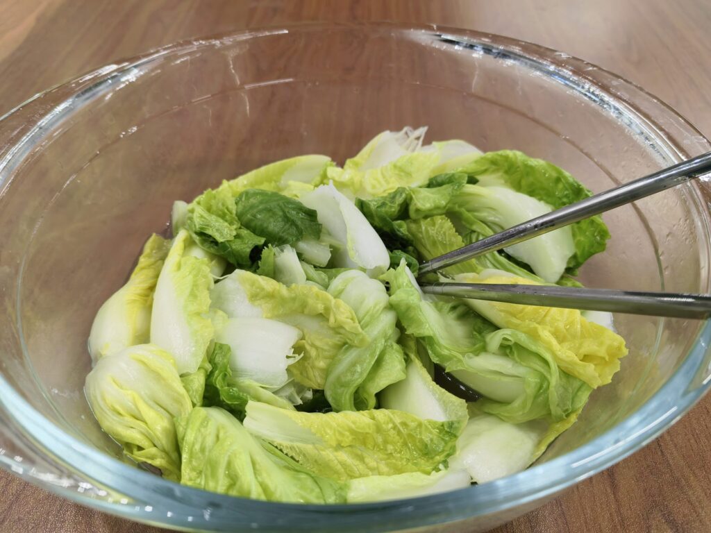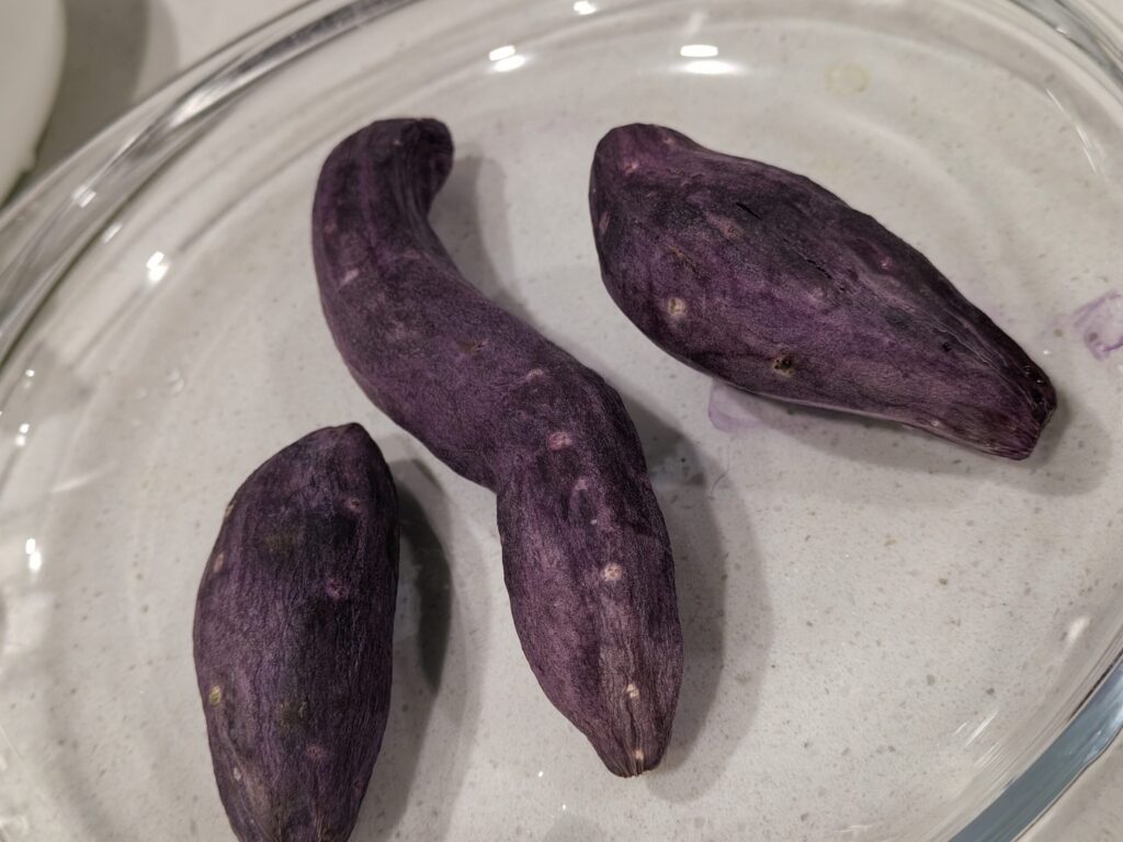今天晚上试了一下微波炉小白菜,加一点盐和香油,新鲜出炉真的香!紫薯也好吃!
